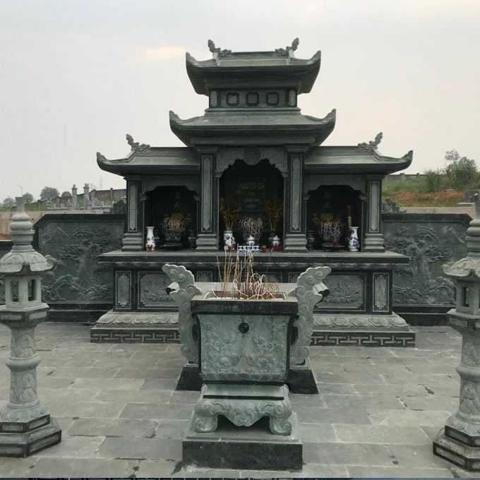 Lầu đá là một trong những công trình tâm linh quan trọng, thường được xây dựng trong khu lăng mộ gia tộc để tưởng nhớ và tri ân tổ tiên. Sản phẩm được chế tác từ chất liệu đá xanh tự nhiên nguyên khối, mang lại sự trang nghiêm, bền vững và trường tồn cùng thời gian.