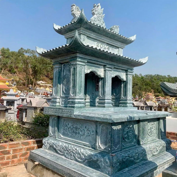 Mộ đôi đá xanh rêu không chỉ là nơi an nghỉ vĩnh hằng cho ông bà, cha mẹ, mà còn thể hiện lòng hiếu kính và tri ân sâu sắc của con cháu đối với tổ tiên. Với độ bền vượt thời gian, sản phẩm có thể chống chịu được mưa nắng khắc nghiệt mà vẫn giữ nguyên vẻ đẹp sang trọng.